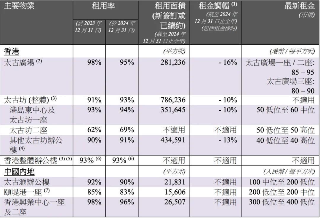 不过,对比2024年三季度来看,太古地产于香港的办公楼,无论从出租率还是租金水平,均表现为止跌企稳。